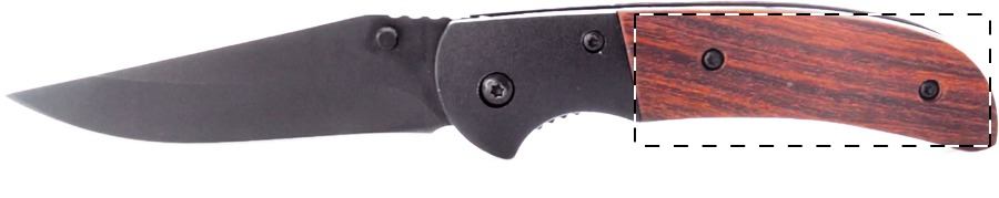 Coltello tascabile in acciaio inox con manico in legno e blocco di sicurezza.