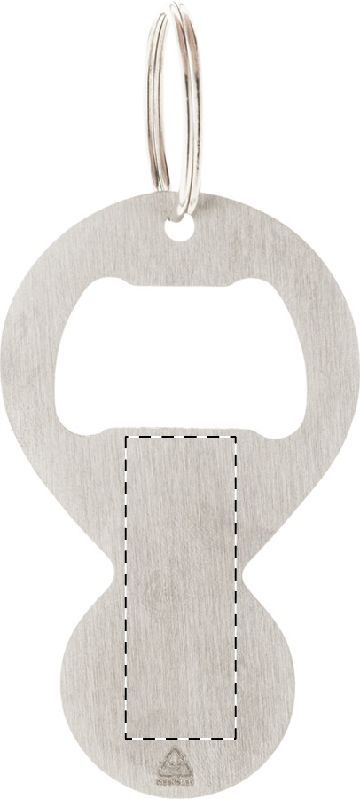 Portachiavi in acciaio riciclato con apribottiglie ed inserto per il carrello della spesa.