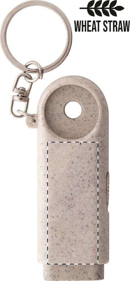 Portachiavi in plastica ecologica ricavata dalla paglia di grano con gettone per carrello spesa e 2 lampadine a LED. Con batterie a bottone.