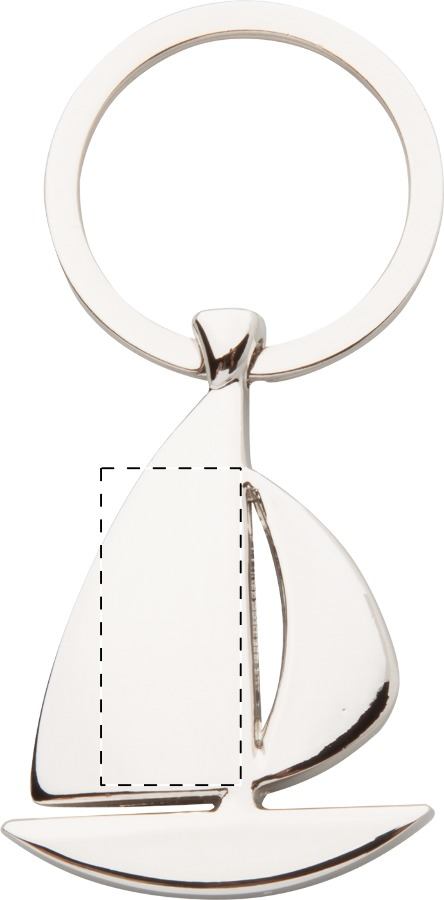 Portachiavi in metallo a forma di nave in confezione di cartone nera.