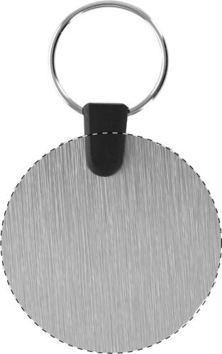 Portachiavi di forma tonda in composito di alluminio spazzolato con stampa a colori. Il prezzo include la stampa UV LED su un lato. MOQ: 100 pz.