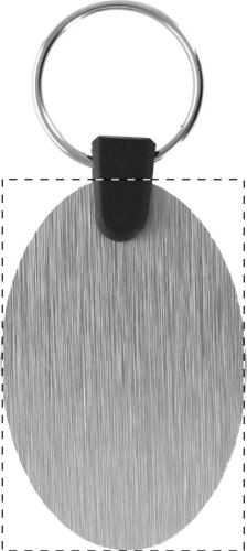 Portachiavi di forma ovale in composito di alluminio spazzolato con stampa a colori. Il prezzo include la stampa UV LED su un lato. MOQ: 100 pz.