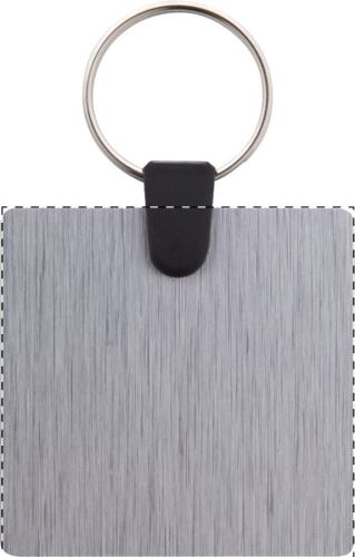 Portachiavi di forma quadrata in composito di alluminio spazzolato con stampa a colori. Il prezzo include la stampa UV LED su un lato. MOQ: 100 pz.