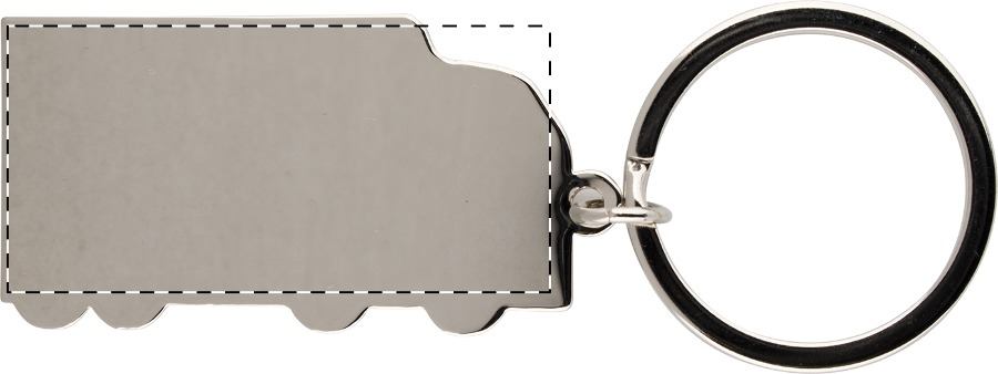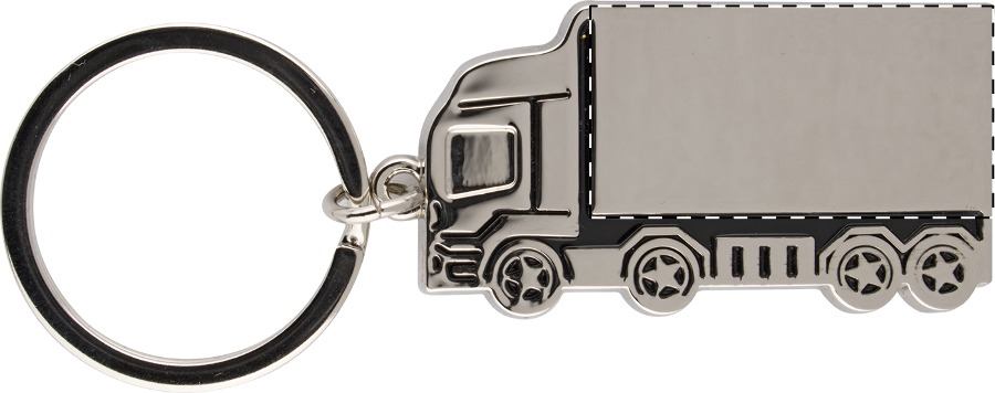 Portachiavi in metallo a forma di camion, in confezione regalo di cartoncino nero.