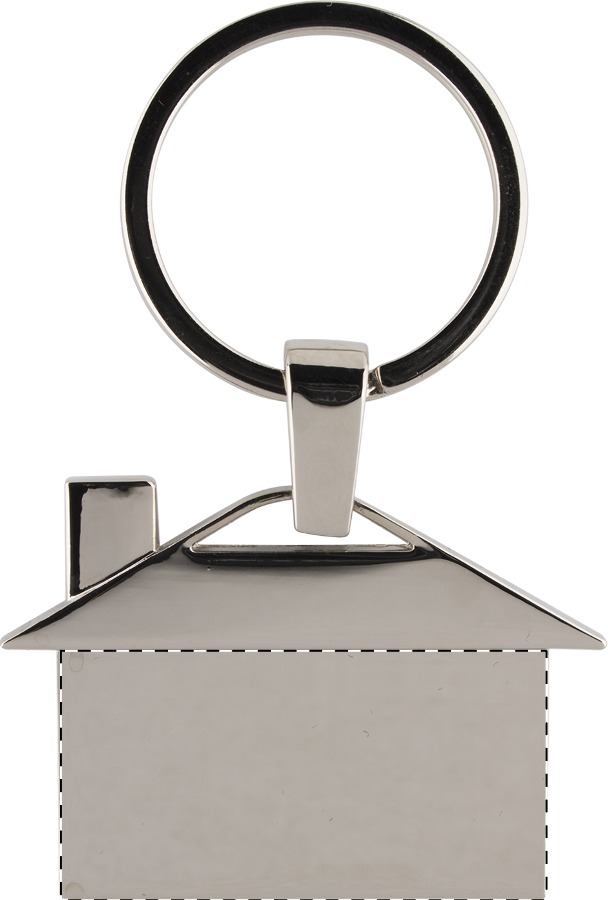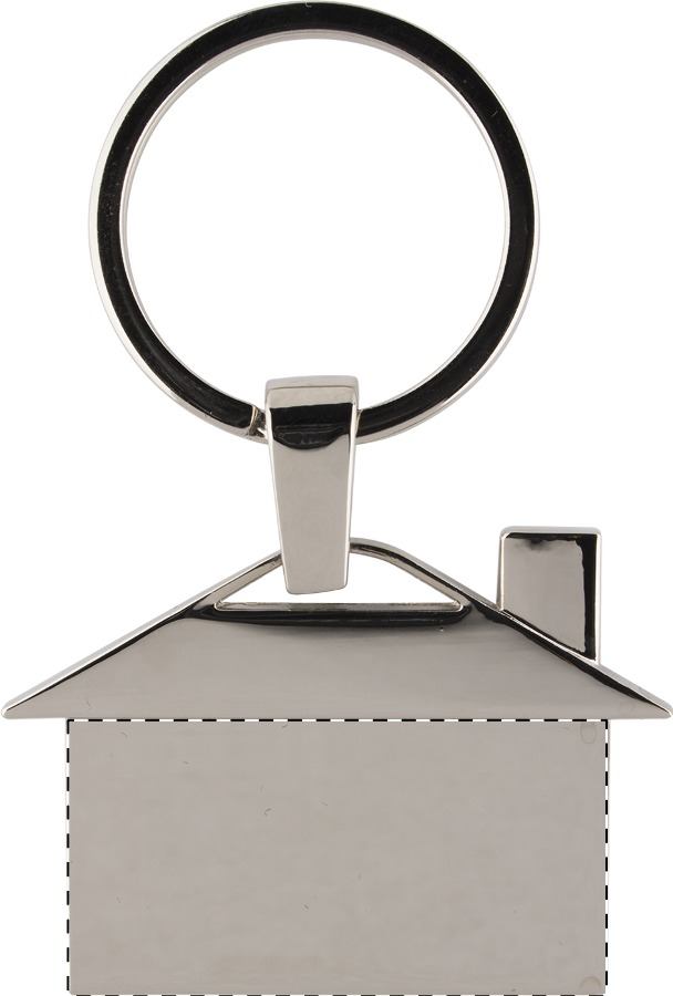 Portachiavi in metallo a forma di casa in confezione di cartoncino nero.