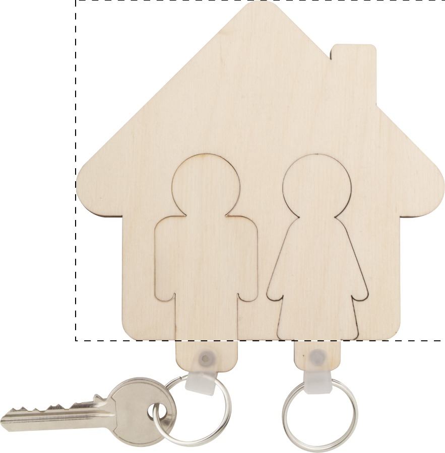 Portachiavi a parete a forma di casa con 2 portachiavi estraibili. Realizzato in multistrato di betulla.
