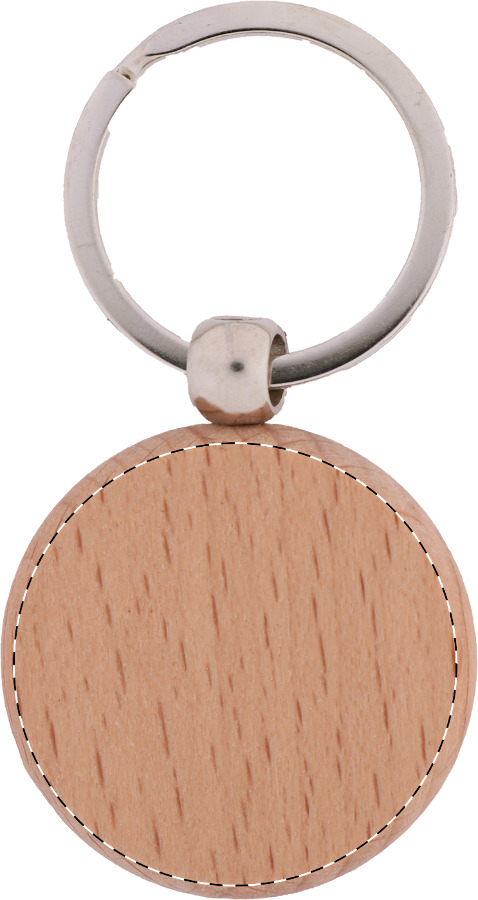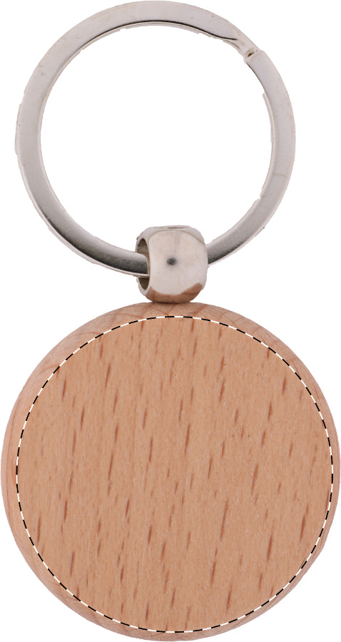 Portachiavi in legno di faggio naturale con anello in metallo.