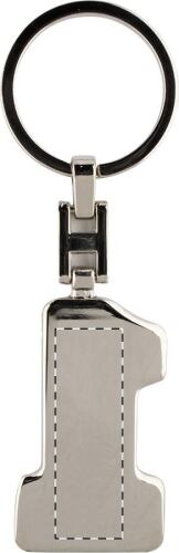 Portachiavi in metallo a forma di numero 1, in confezione regalo di cartoncino nero.