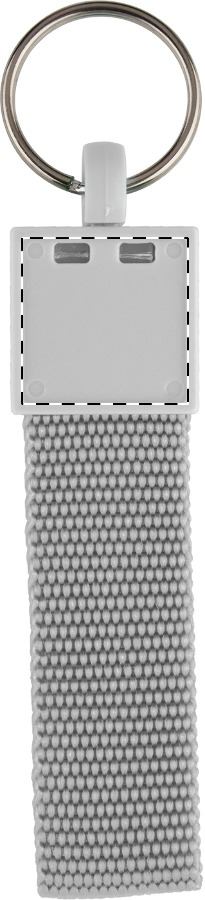 Portachiavi in plastica con cinturino coordinato.