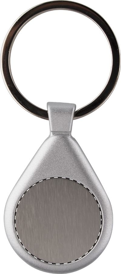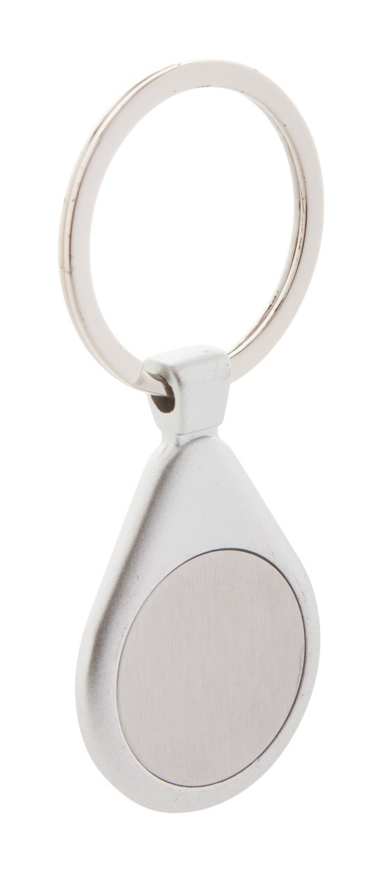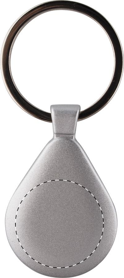 Portachiavi a forma di goccia, corpo in alluminio con anello di metallo.
