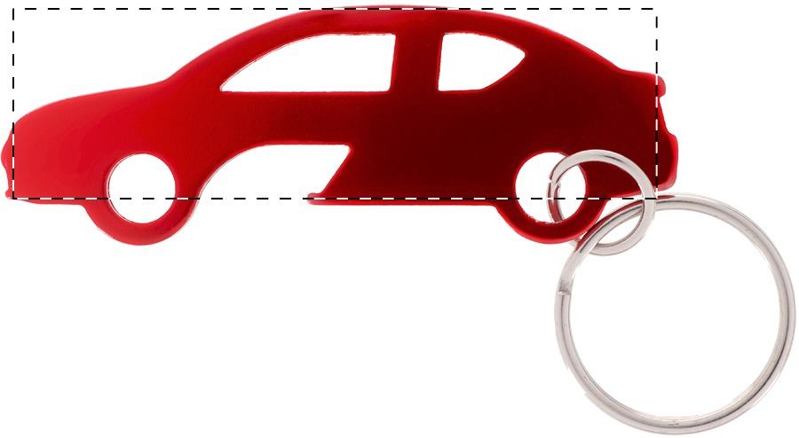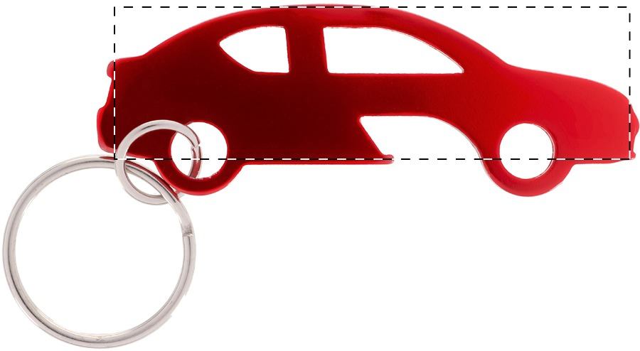 Portachiavi in alluminio a forma di auto con funzione apribottiglie.