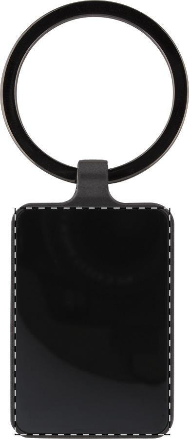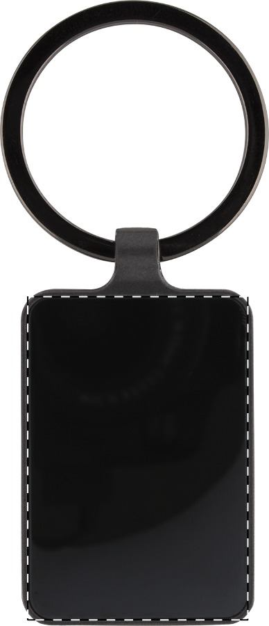 Portachiavi rettangolare in metallo con finitura canna di fucile e piastra lucida su entrambi i lati. Fornito in elegante confezione di cartoncino nero.