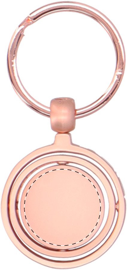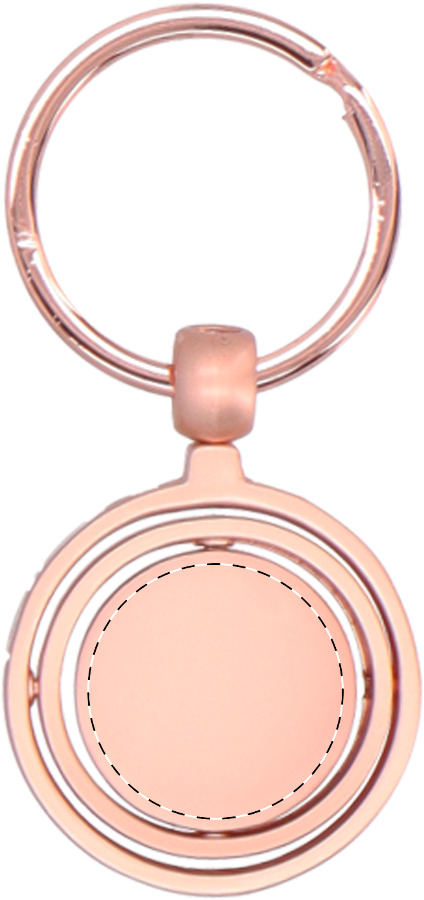 Portachiavi in metallo con finitura dorata e parte interna ruotabile. Confezione in scatola di cartoncino kraft.