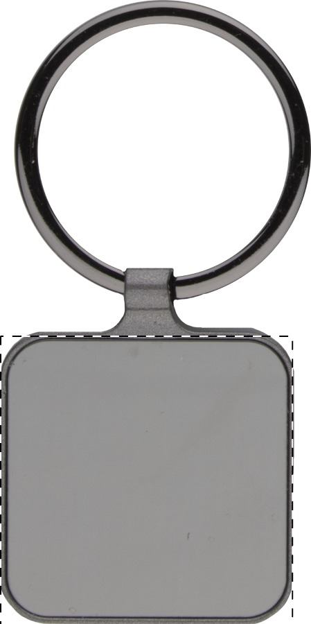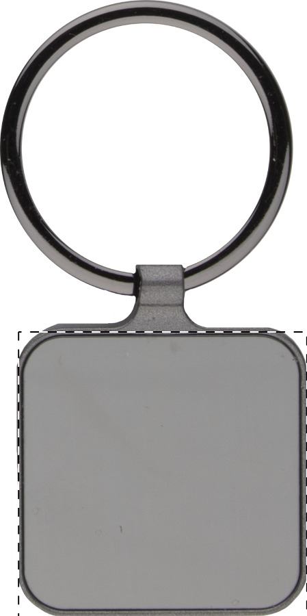 Portachiavi quadrato in metallo con finitura canna di fucile e piastre lucide su entrambi i lati. Fornito in confezione regalo nera.