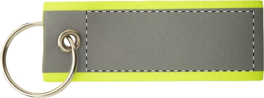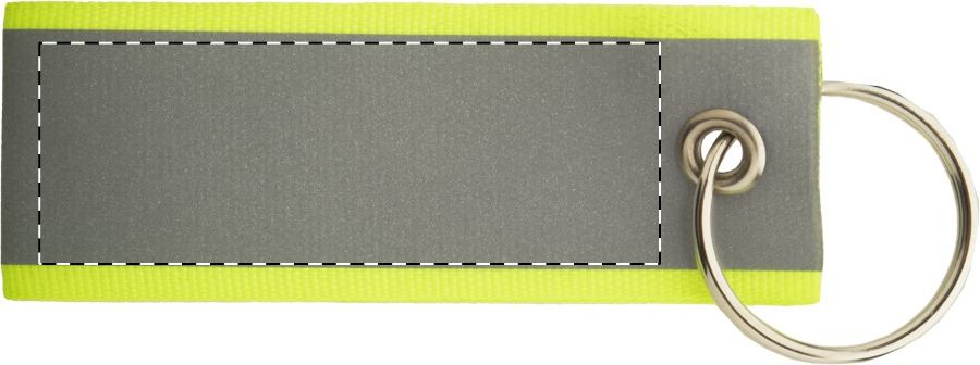 Portachiavi con fascetta riflettente in poliestere e anello in metallo. Solo per uso promozionale, il prodotto non può essere considerato un dispositivo di protezione personale.