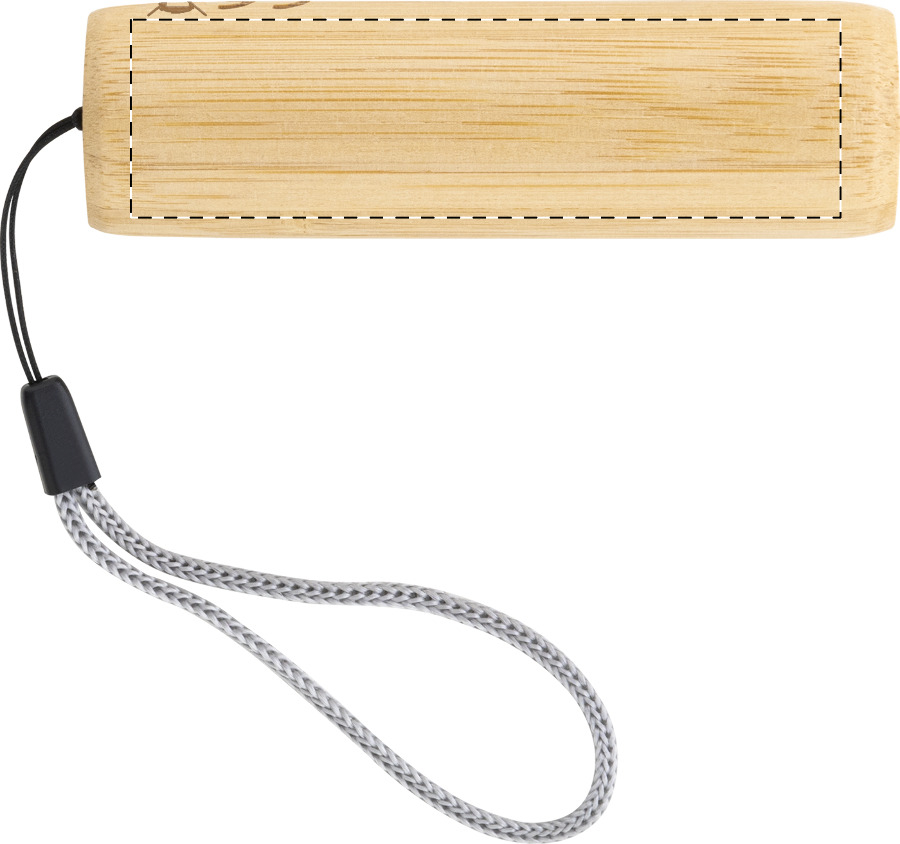Torcia in bambù con batteria ricaricabile USB integrata (320 mAh), 1 luce LED con 3 modalità di luminosità e cinturino. Fornita con cavo di ricarica USB.