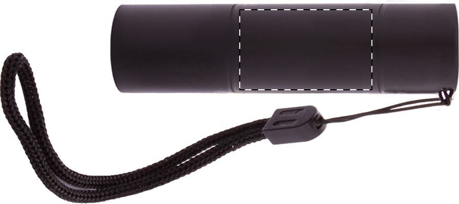 Torcia in alluminio con batteria ricaricabile USB integrata (400 mAh). Dotata di luce frontale COB ad alta potenza ed ulteriore sorgente luminosa COB sul lato. Modalità di luce fissa e lampeggiante. Fornita con cavo di ricarica USB.