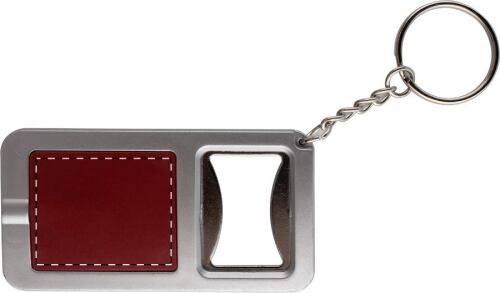 Apribottiglie in plastica con torcia built-in e portachiavi. Con 2 batterie a bottone.