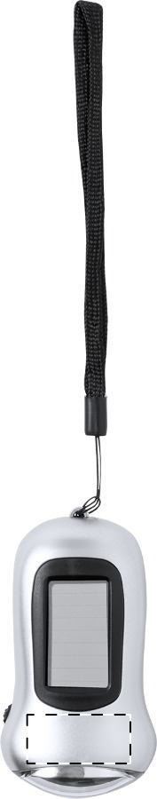 Torcia con 3 LED a doppia alimentazione, con caricatore solare e dinamo manuale. In custodia di plastica ABS con cinturino