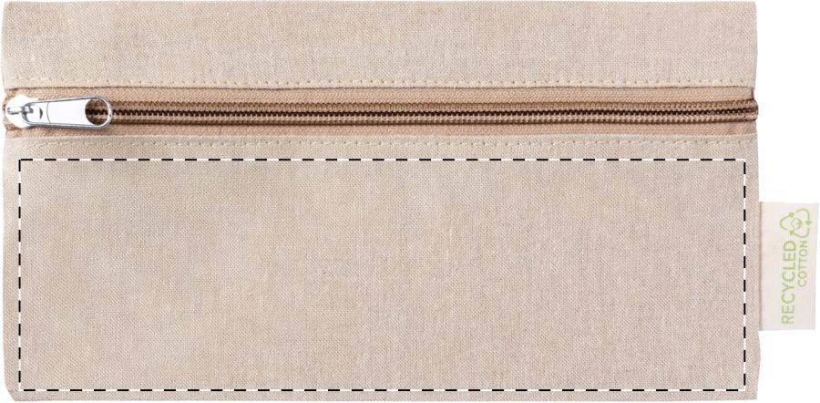 Astuccio per penne in 100% cotone riciclato con cerniera ed etichetta.