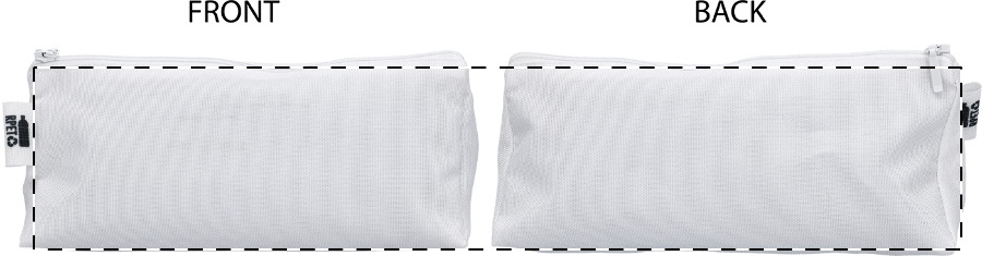 Astuccio triangolare per penne con cerniera, in poliestere 600D RPET, grafica stampata in sublimazione su tutta la superficie ed etichetta RPET. MOQ: 50 pezzi.