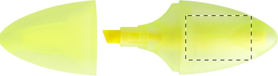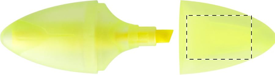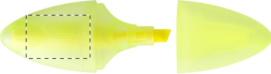 Evidenziatore in plastica traslucida di forma ovale.