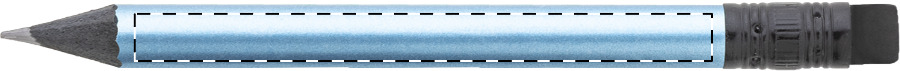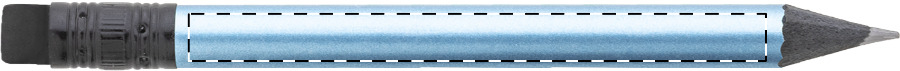 Mini matita in legno nero, con finitura metallizzata, gomma nera e mina HB. Fornita temperata.