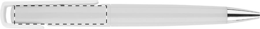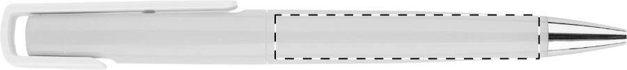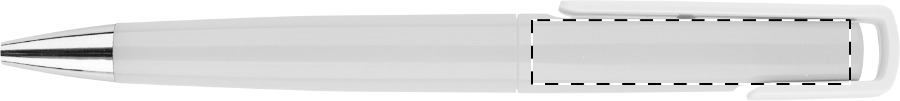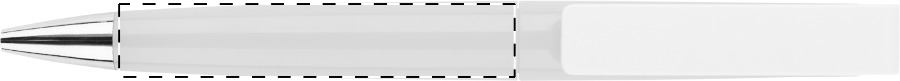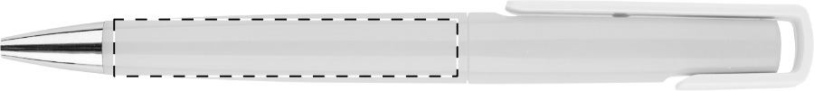 Penna a sfera in plastica con meccanismo a rotazione e clip maggiorata per la stampa. Fornita refill blu.