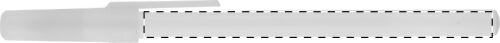 Penna a sfera in plastica con corpo bianco, tappo colorato e refill blu.