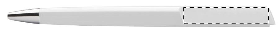 Penna a sfera in plastica con refill blu, punta e terminale cromati.