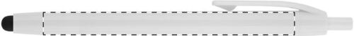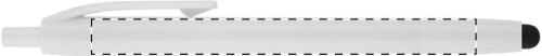 Penna a sfera in plastica con gommino capacitivo per touch screen e refill blu.