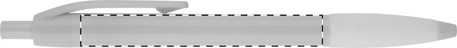 Penna a sfera in plastica con impugnatura in gomma coordinata. Fornita con refill blu.