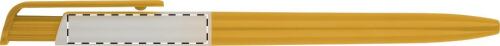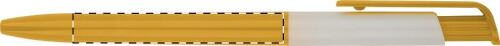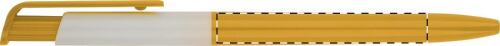 Penna a sfera in plastica colorata con particolare in bianco. Fornita con refill blu.