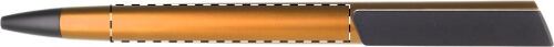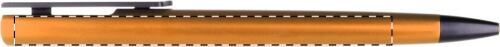 Penna a sfera in plastica con finitura metallica. Fornita con refill blu.