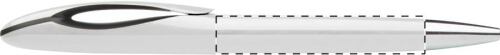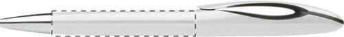 Penna a sfera in plastica con meccanismo a rotazione, puntale cromato e refill blu.