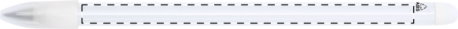 Penna senza inchiostro di lunga durata in plastica ABS riciclata con punta in lega metallica che ossida la carta e gomma. Questa penna scrive in modo simile a una matita ed è anche cancellabile.