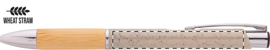 Penna a sfera in plastica ecologica di paglia di grano con impugnatura in bambù e parti in metallo. Con refill blu.