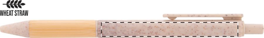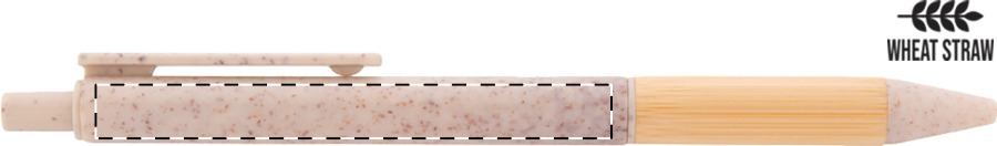 Penna a sfera in plastica ecologica di paglia di grano con impugnatura in bambù e parti in metallo. Con refill blu.