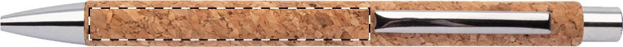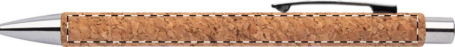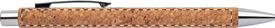 Penna a sfera in carta riciclata ricoperta di sughero naturale con parti in metallo e refill blu.