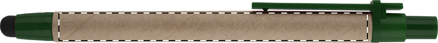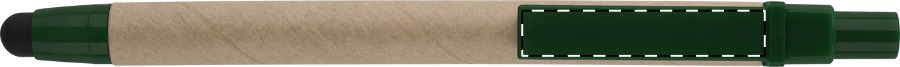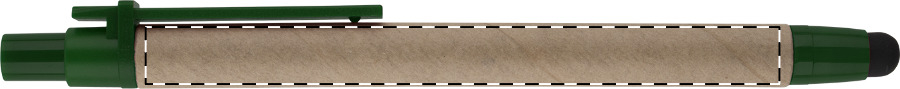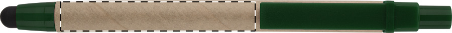 Penna a sfera in carta riciclata con gommino capacitivo per touch screen, clip e puntale in plastica colorata. Con refill blu.