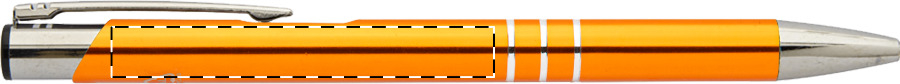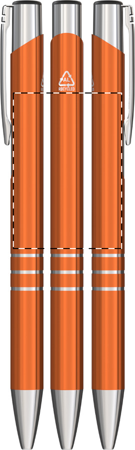 Penna a sfera in alluminio riciclato con finitura metallizzata e refill blu.