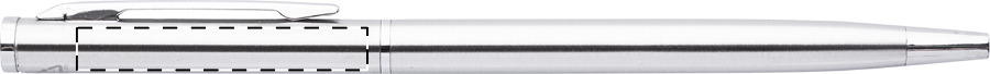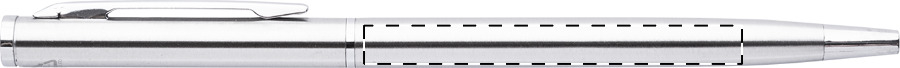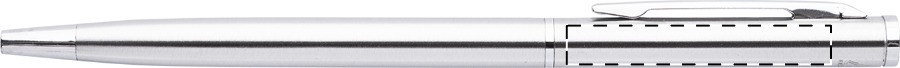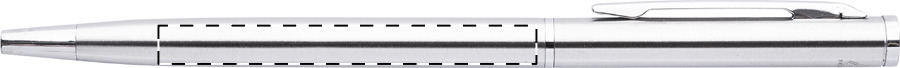 Penna a sfera in acciaio riciclato con meccanismo di apertura a rotazione e componenti cromate. Fornita con refill blu.
