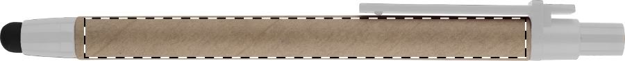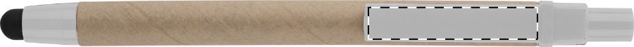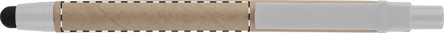 Penna a sfera in carta riciclata con gommino capacitivo per touch screen, clip e puntale in plastica colorata. Con refill blu.