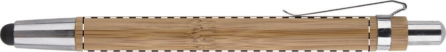 Set penne in bambù, composto da penna a sfera capacitiva con refill blu e matita meccanica da 0,7 mm. In scatola regalo.