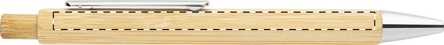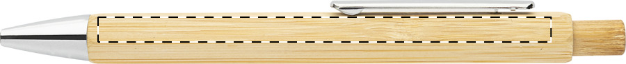 Penna a sfera in bambù esagonale con parti cromate e refill blu.