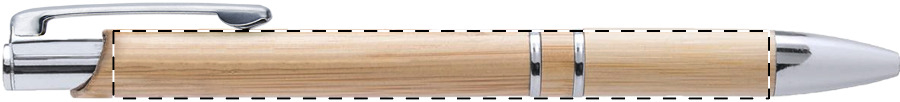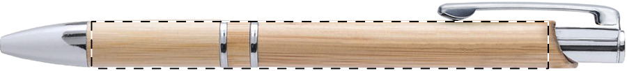 Penna a sfera in bambù con punta e clip cromati e refill nero.