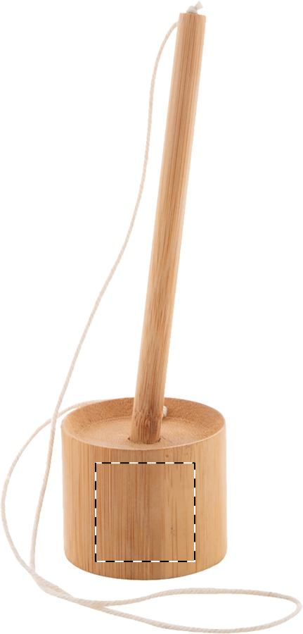 Stiloforo per reception con penna a sfera in bambù e supporto autoadesivo. La penna è fissata al supporto con un cordoncino di cotone. Con refill blu.