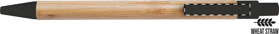 Penna a sfera in bambù con parti in plastica ecologica di paglia di grano. Con refill blu.