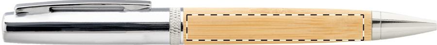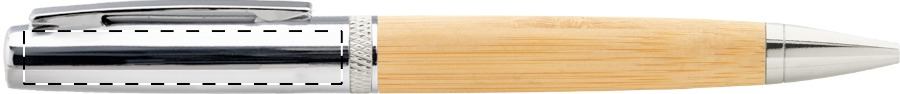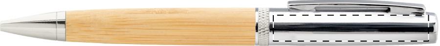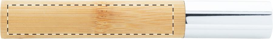 Elegante penna a sfera in metallo con meccanismo a rotazione, fusto in bambù e parti cromate lucide. In astuccio tubolare di bambù e cappuccio cromato. Con refill blu.