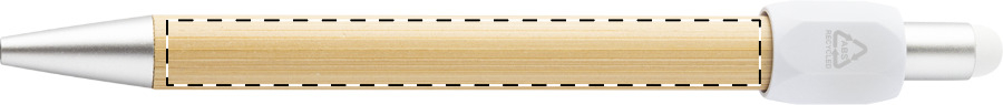 Penna a sfera capacitiva in bambù con fidget spinner in plastica ABS riciclata e refill blu.